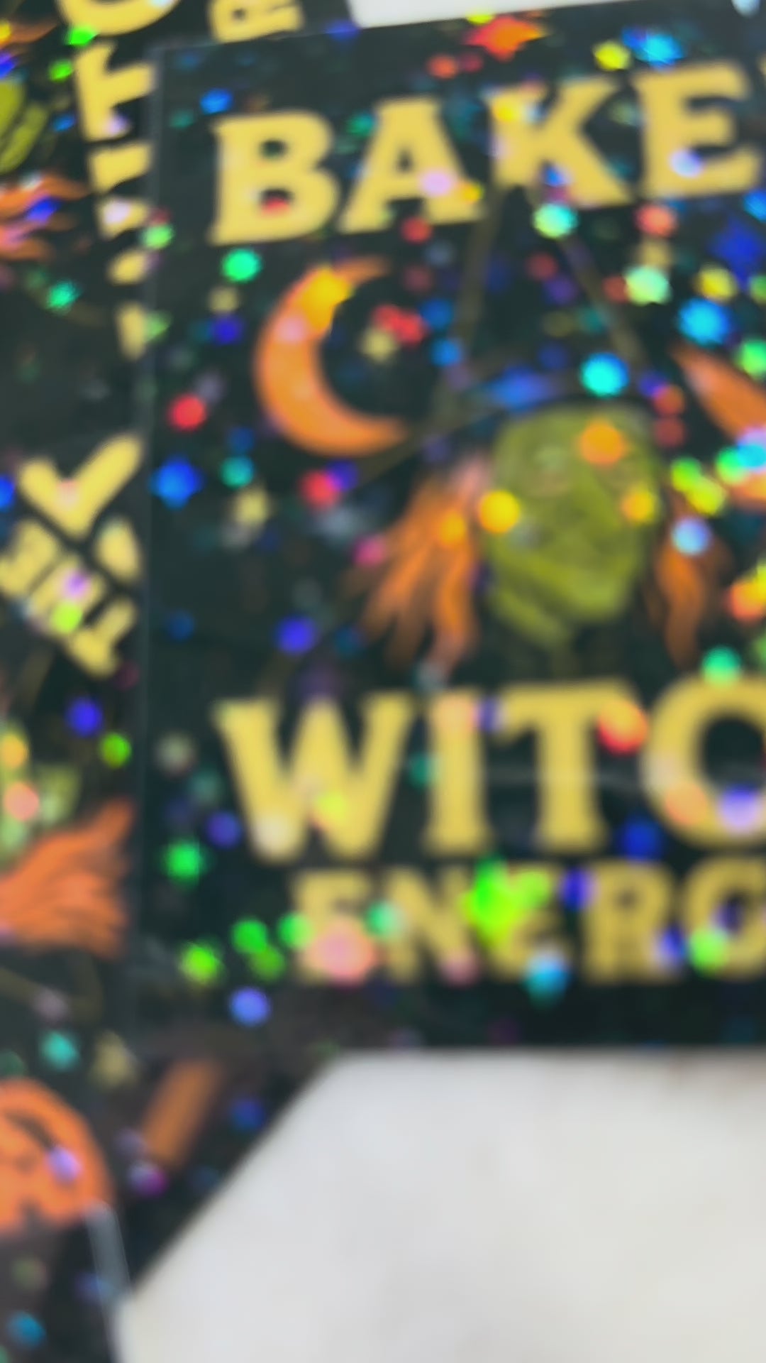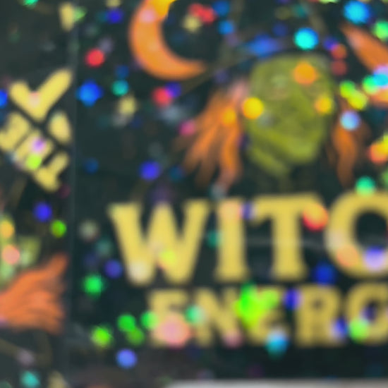 Channel your spooky stoner vibes with this Baked Witch Energy sticker! Measuring 3x3 inches, this design features a hand-drawn classic green witch with fiery hair, paired with a crescent moon and cannabis leaf. Finished with a star holographic overlay, it sparkles and shifts in the light for an extra magical touch.