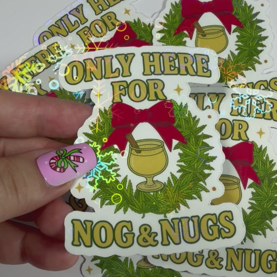 🎄Only Here for the Nog & Nugs Holographic Sticker 🎄
