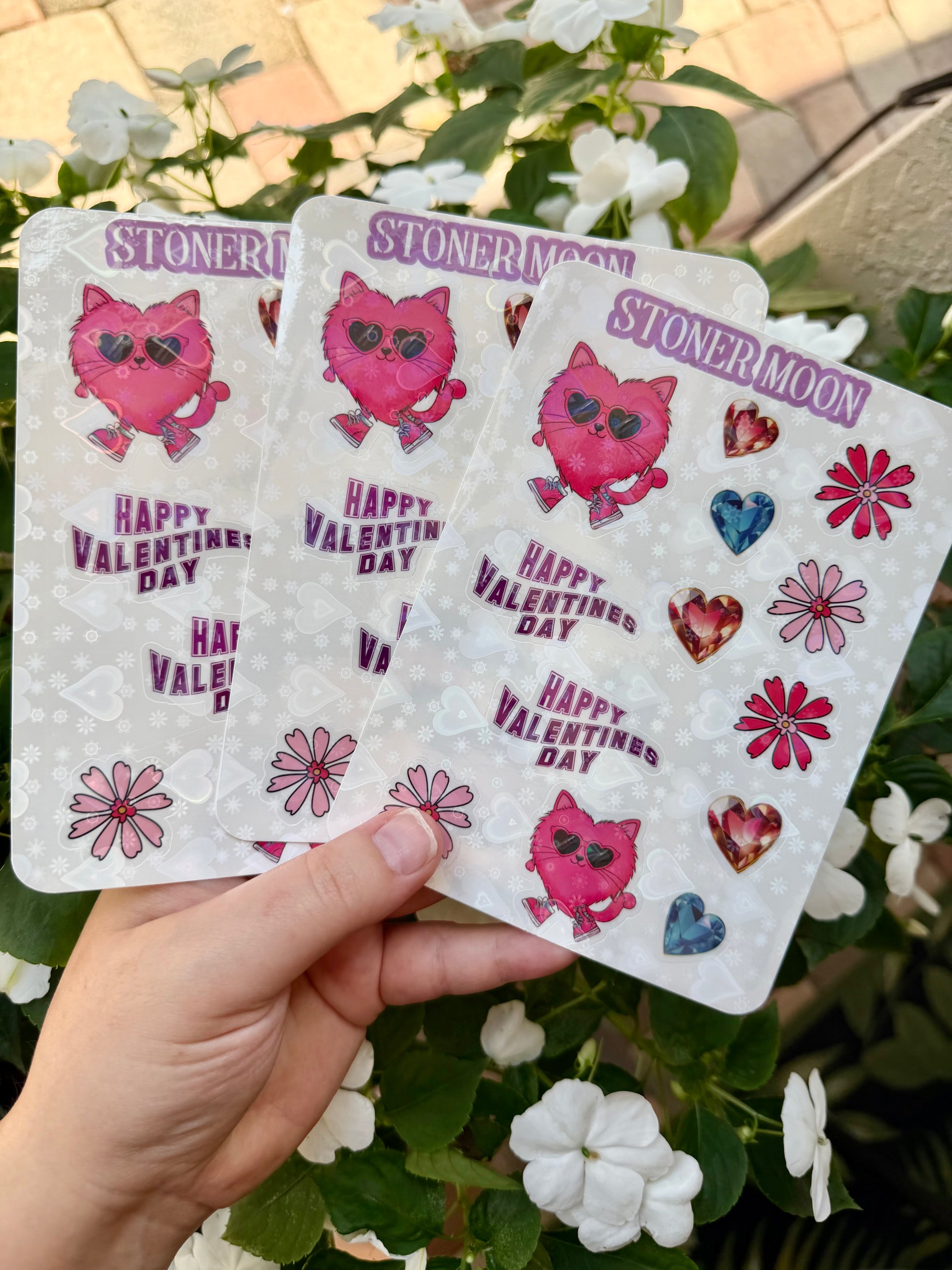 Holographic Valentines Sticker Sheet, Cats and Flowers Decal sheets, Funky Waterproof Valentines stickers, Cute Cat Vday Stickers