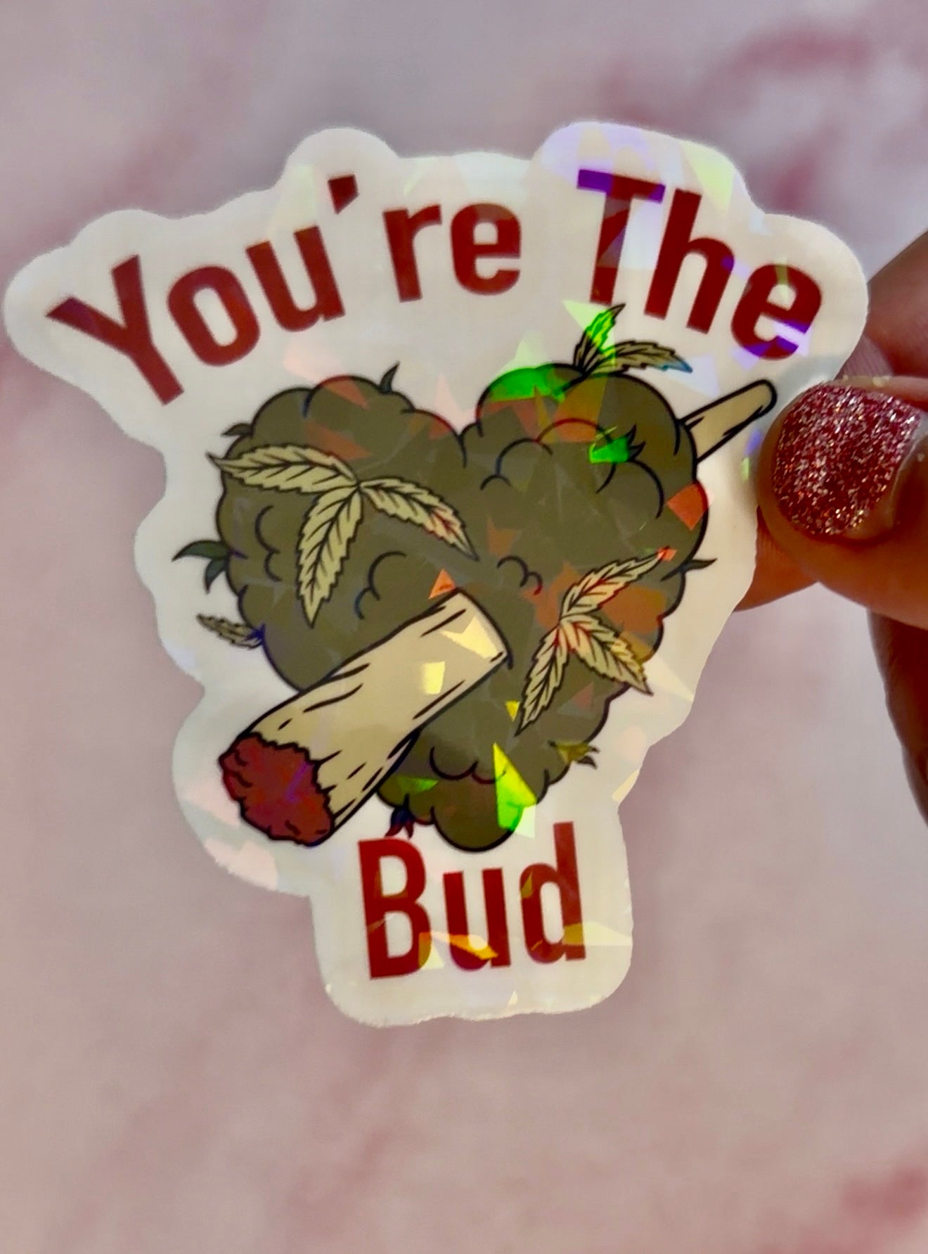 Holographic Valentines Stoner Sticker, Cute Cannabis Decal, You’re The Bud Sticker, Valentines stoner gift for her, Stoner Gifts,